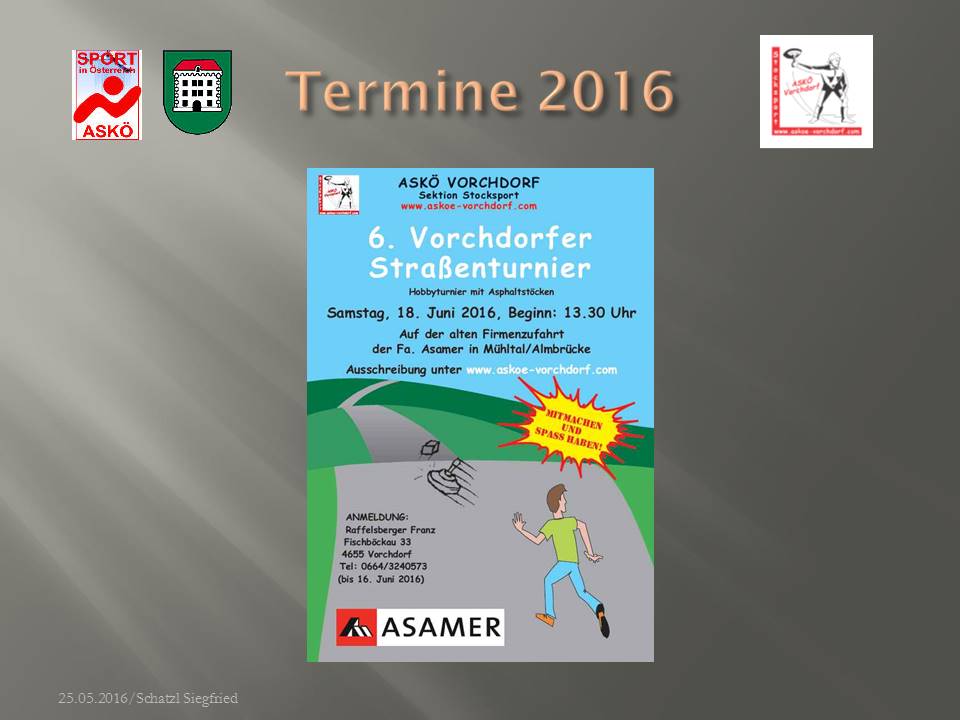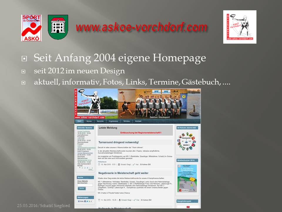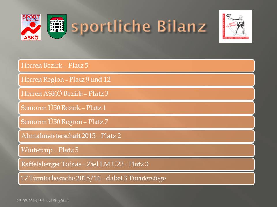 Für all jene, welche der ASKÖ Jahreshauptversammlung fern blieben - und das waren leider sehr viele Mitglieder unserer Sektion (schade) - ist im Anhang die Präsentation unserer Sektion zu finden (dies obwohl solche Informationen eigentlich eine Holschuld sind)