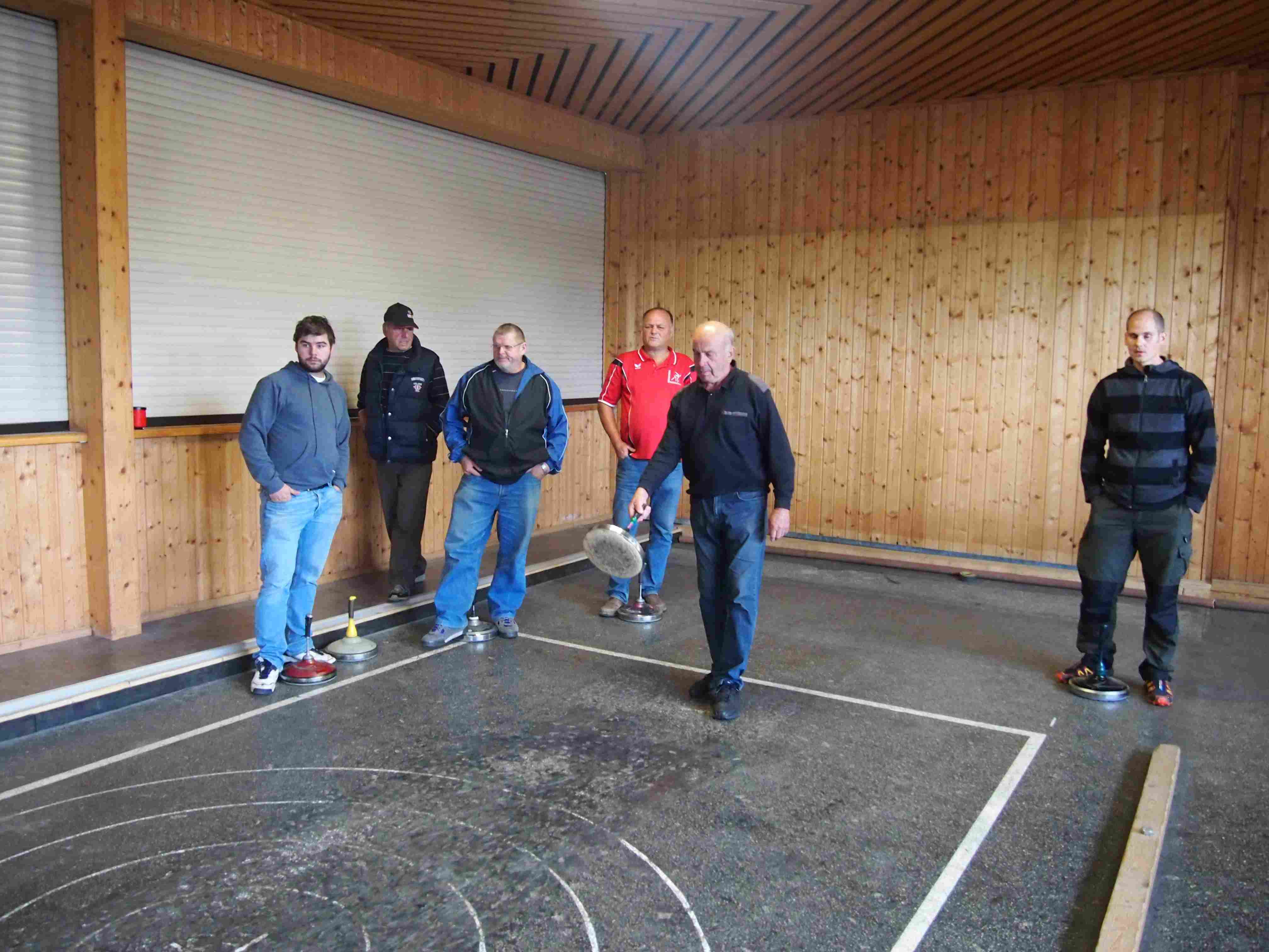 Doch pünktlich zu Beginn kam abermals der Regen und mussten wir daher in die Stocksporthalle ausweichen. Dort wurden in einer "wilden Schießerei" in 2 Gruppen zu je 6 Mannschaften die Finalisten ermittelt.