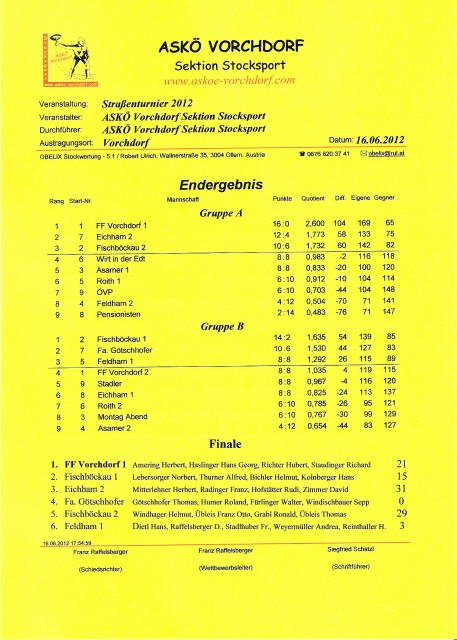 Sieger FF Vorchdorf 1Nach dem Regenwetter im Vorjahr meinte es der Wettergott gut mit uns und schenkte uns prachtvolle Bedingungen beim 2. Vorchdorfer Straßenturnier.