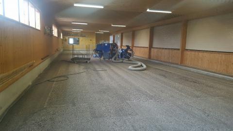 Mit Kugelstrahltechnik wurde der alte Belag entfernt und bis 8. Mai die Bahnen neu beschichtet.