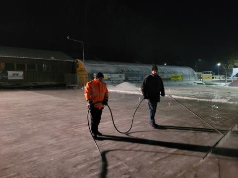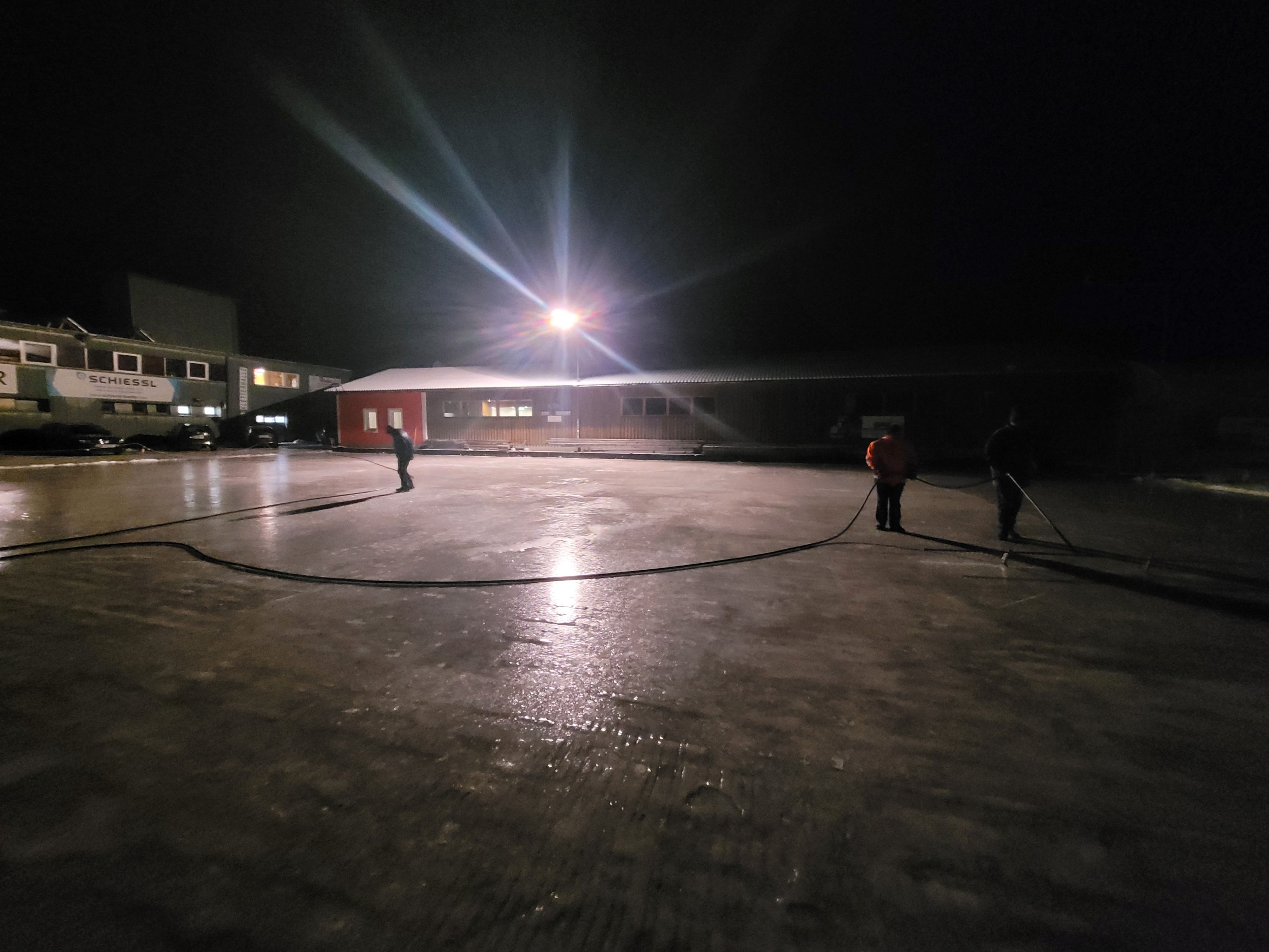Die Vorbereitungen für die Errichtung der 12 Eisbahnen am Sportplatzparkplatz  laufen auf Hochtouren.