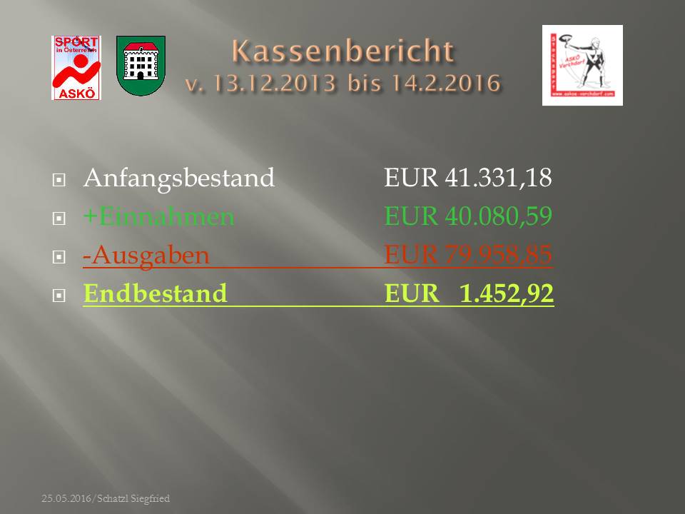 Für all jene, welche der ASKÖ Jahreshauptversammlung fern blieben - und das waren leider sehr viele Mitglieder unserer Sektion (schade) - ist im Anhang die Präsentation unserer Sektion zu finden (dies obwohl solche Informationen eigentlich eine Holschuld sind)