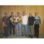 Die Siegermannschaft (Kubista Walter, Edtmayr Bertl, Malfent Karl und Kronberger Gottfried mit Bürgermeister Schimpl und Sektionsleiter Raffelsberger