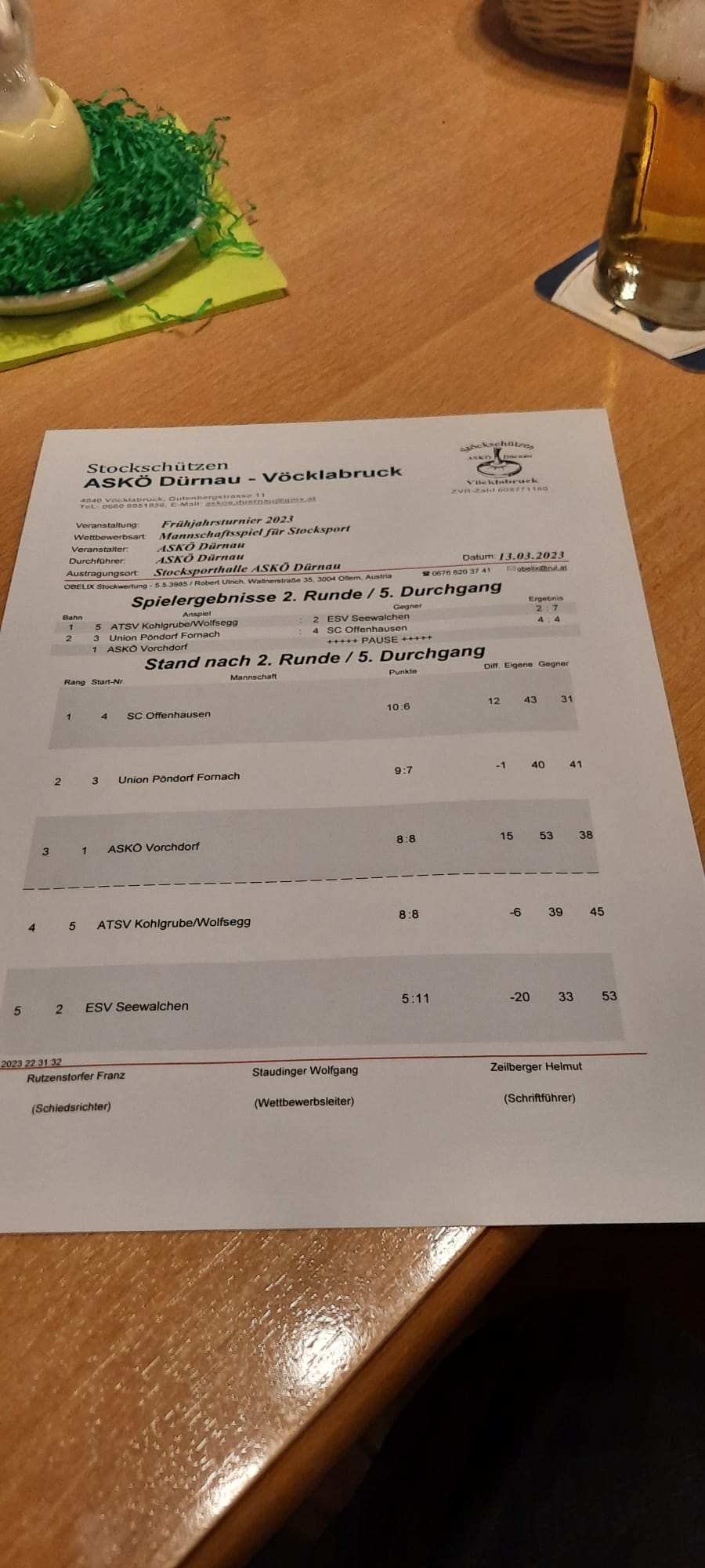 SK Bad Wimsbach 2, unser Heimteam ASKÖ Vorchdorf und ESV ASKÖ Viechtwang erreichten je 12 Punkte und bleiben im Spitzenfeld der Gesamtwertung. Nur Union Eberstalzell verlor die geteilte Spitzenposition und liegt nun auf Platz 3, aber auch noch in Schlagdistanz.